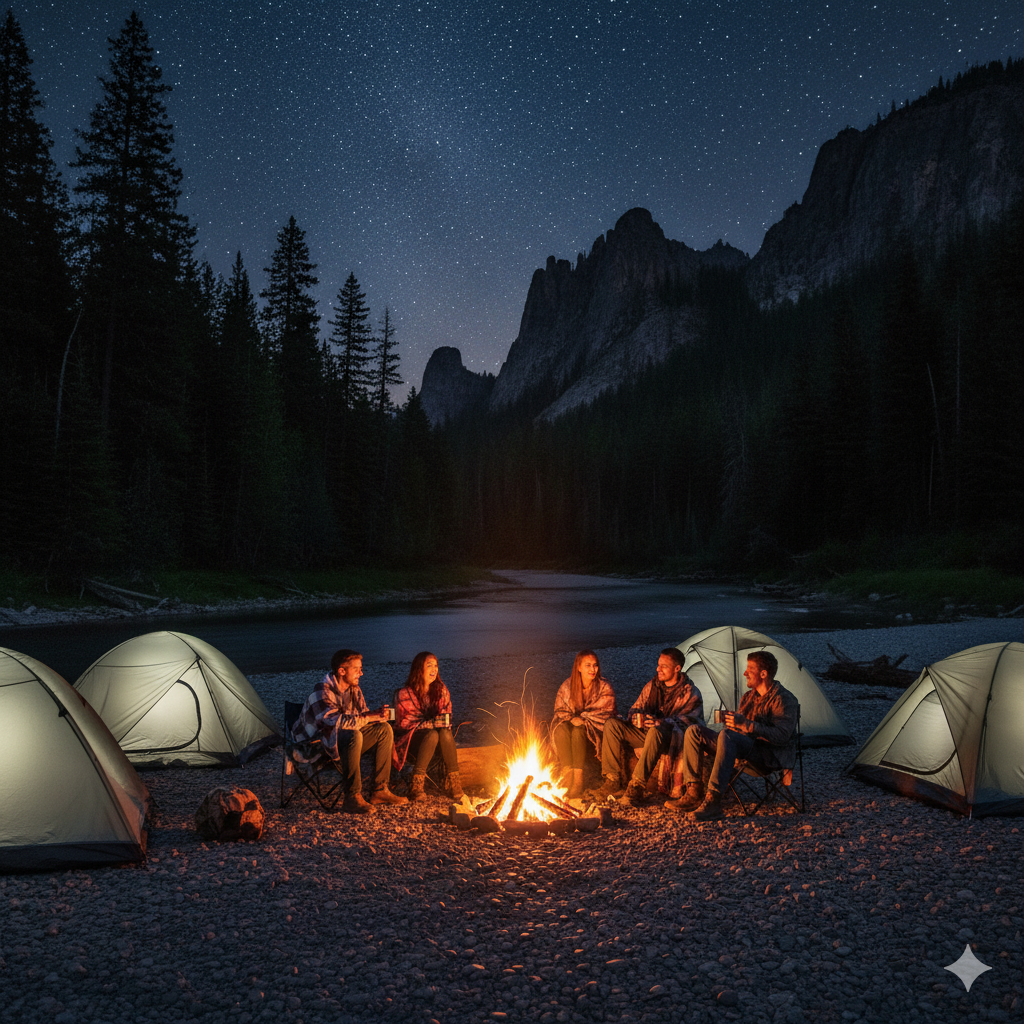 Experience riverside camping with cozy tents, bonfires, music, and delicious meals. Enjoy the perfect blend of adventure and relaxation in the heart of nature.