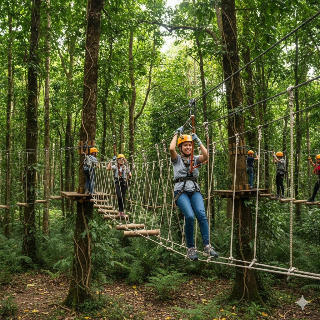 Challenge yourself with exciting rope and adventure activities such as ziplining, rappelling, wall climbing, and Burma bridge crossings—ideal for thrill lovers and kids.