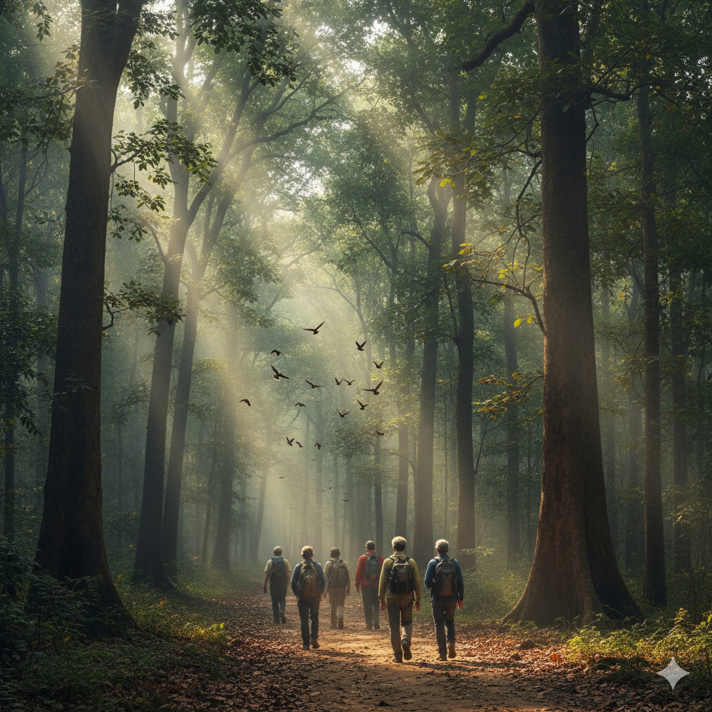 Stroll through serene forest trails and riverside paths while spotting rare birds and butterflies. Jim Corbett hosts over 500 bird species, making it a paradise for birdwatchers.